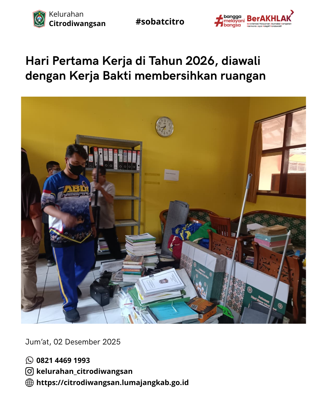 Mengawali hari pertama kerja di tahun 2026, jajaran staf dan pimpinan Kelurahan Citrodiwangsan, tidak langsung berkerja di balik meja dengan tumpukan berkas. justru ...