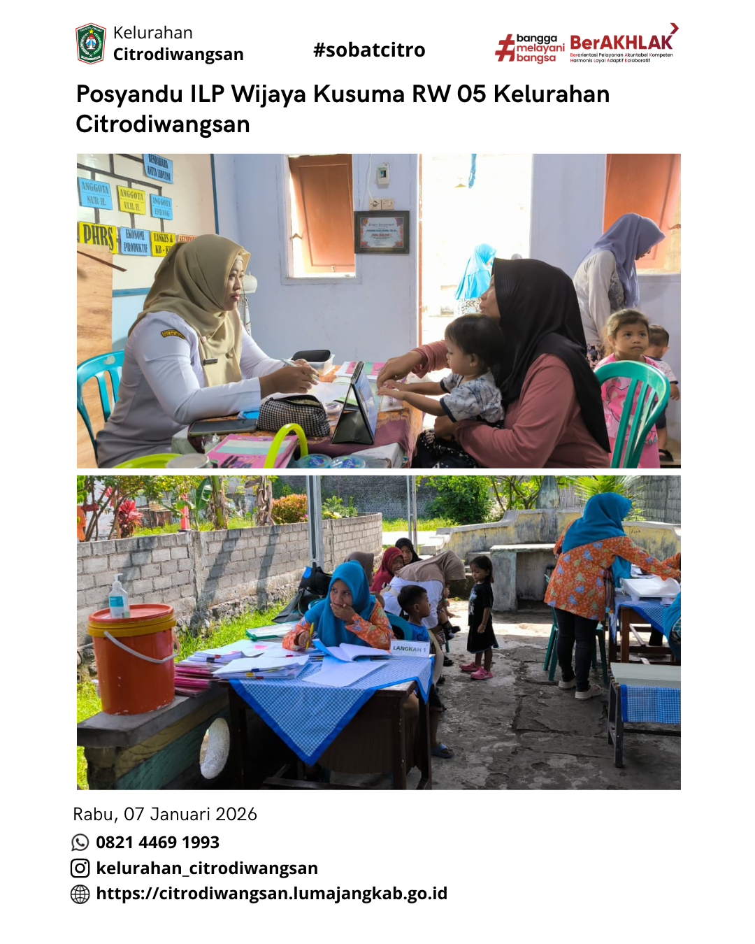 Penerapan sistem ILP ini merupakan langkah maju dari posyandu konvensional. Jika sebelumnya pelayanan cenderung terpisah, kini Posyandu Wijaya Kusuma RW 05 Kelurahan Citrodiwangsan ...